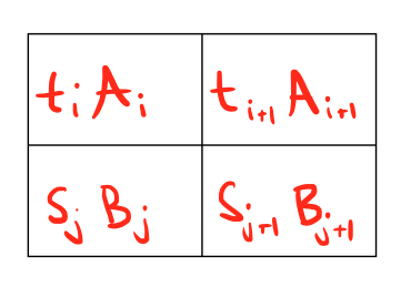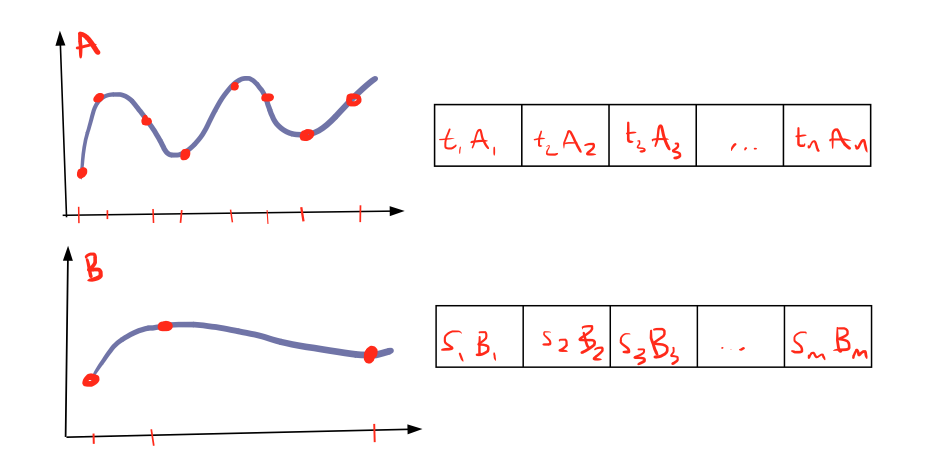 Let’s look at the second issue, fetching new curve points. In the example above, when we reach the time t_i+1 we will need to fetch the new curve point (t_i+2, A_i+2) and when we reach the time s_j+1 we will need to fetch (s_j+2, B_j+2).