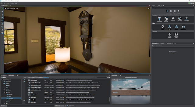 I guess something else I should mention is performance shaders. Stingray comes with a great, flexible standard shader, but I wanted to eke out every little bit of performance I could on this scene while keeping the quality very high. Without much trouble, I created a library of my own purpose-built shaders (like the one mentioned earlier). I used these for various tasks. Simple colors, RMA (roughness-metallic-ambient occlusion), RMA-tiling shaders and a few others came together really quickly. From this handful of shaders, I was able to increase performance while simplifying my design process. I find it comforting how Stingray deals with shaders… it is just very easy to iterate and save a version. Much better usability than other systems I have tried.