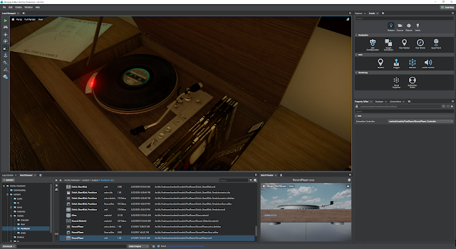 I also gave the record player some extra attention, because my good friend Mathew Harwood was kind enough to do all the audio for the project. I felt the music really set the scene, and he even worked on it over my twitch stream so we could get feedback from some people who were watching. So yeah, press + or - in the game to start and stop the record player, complete with animated tone arm. Nothing super crazy, just a nice little touch.